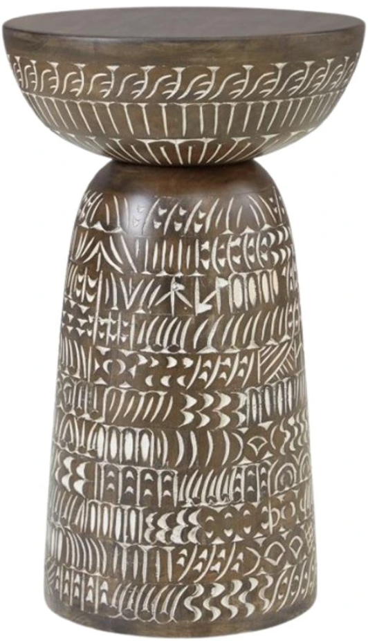 Part functional surface, part art form. Decorated with a carved floral design, this accent table adds an eclectic touch to your home furnishings. Stage it next to a sofa as a chic surface for remotes and drinks. Or use it as a display space for a potted plant or sculpture.Read More