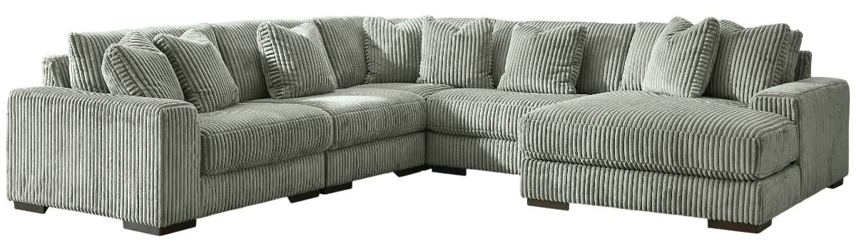 Plush and posh. Showcase your eye for on-trend texture with the statement-making cord upholstery of this sectional with chaise. Its stunningly soft fabric entices in an ivory hue, complementing contemporary color palettes. This cozy living room centerpiece highlights your high-end approach to comfort and style.Read More
