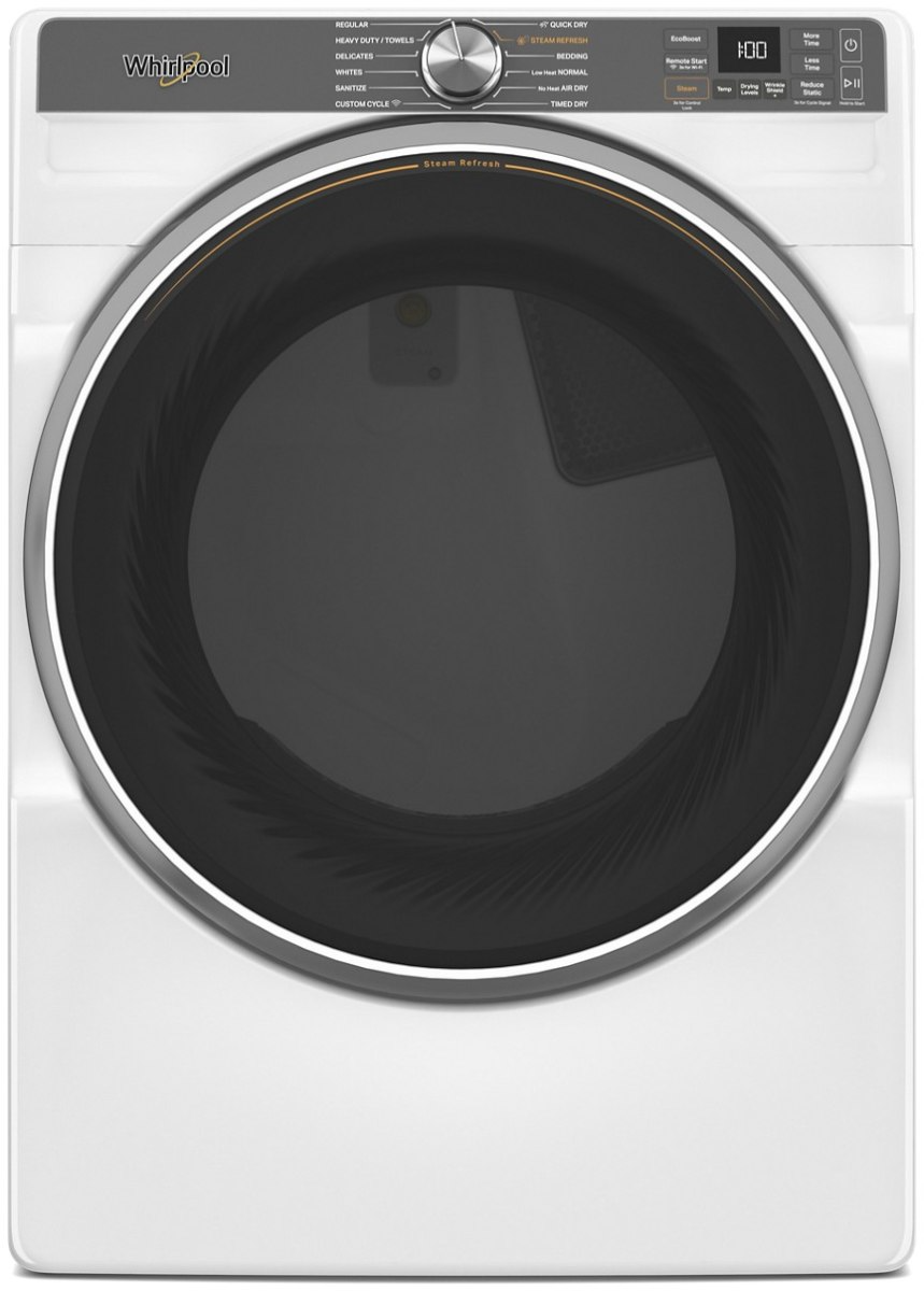 Release wrinkles without rewashing using the Steam Refresh Cycle in this front load electric dryer. It has smart features so you can track progress remotely using the Whirlpool® App, and AI sensors that automatically adjust dry time, to prevent overdrying.Read More